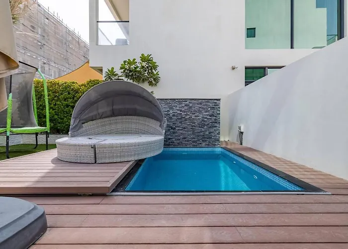 تقع فيلا Coastal Themed 4Br Townhouse With Pool In Jvc المكونة من 5 غرفة نوم على بعد 7 كم تقريبًا من قرية المعرفة، وتقدّم بركة السباحة الخصوصية والحديقة لترفيه الضيوف.